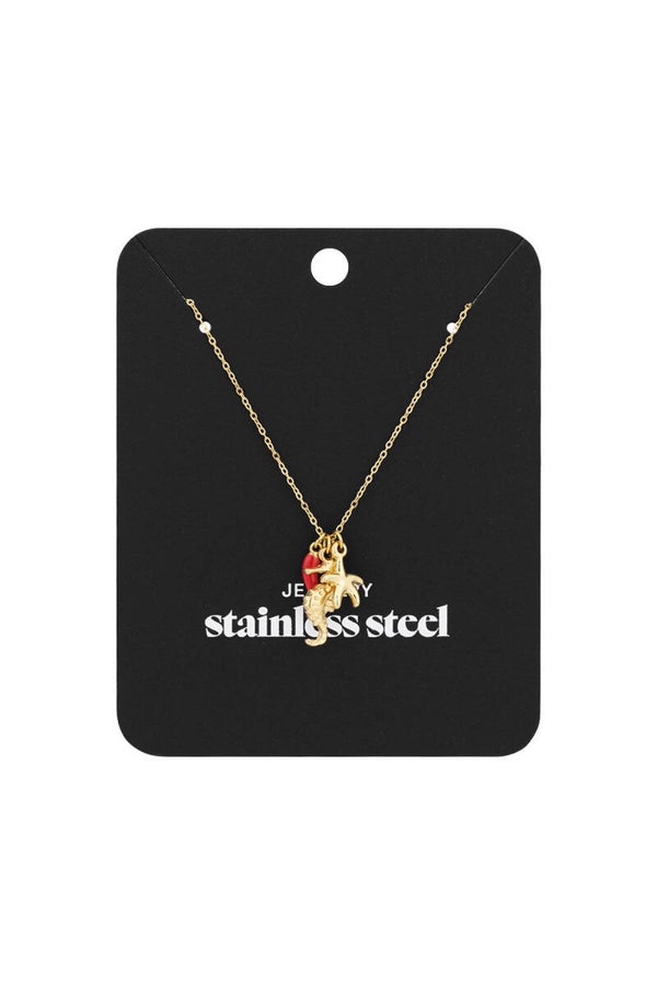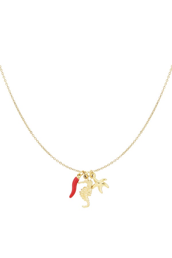 Deze mooie stainless steel Fruits de Mer ketting verkleurd niet. Dus neem gerust een frisse duik met deze hippe bedelketting.