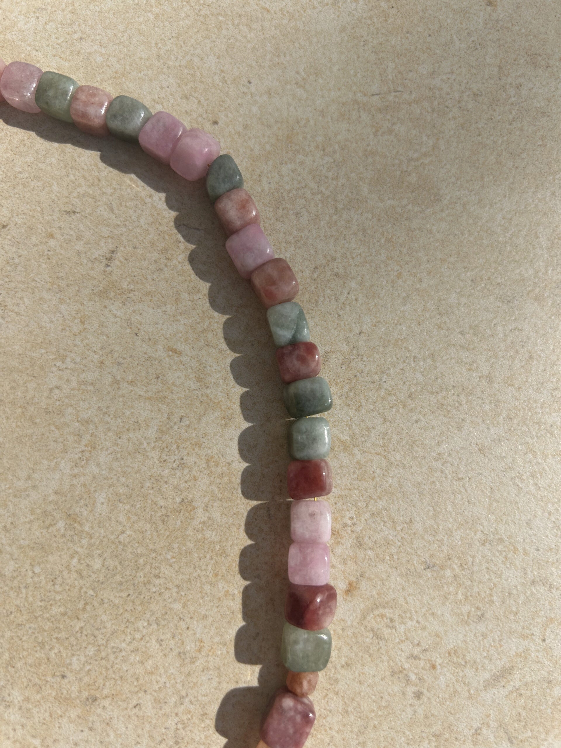 De ketting is afgewerkt met een stainless steel sluiting en zonnebloem bedel die niet verkleurt, en met de hand geregen. Met liefde en oog voor detail. Elke ketting is uniek en prachtig te combineren met een basic goudkleurige ketting voor een trendy layered look.