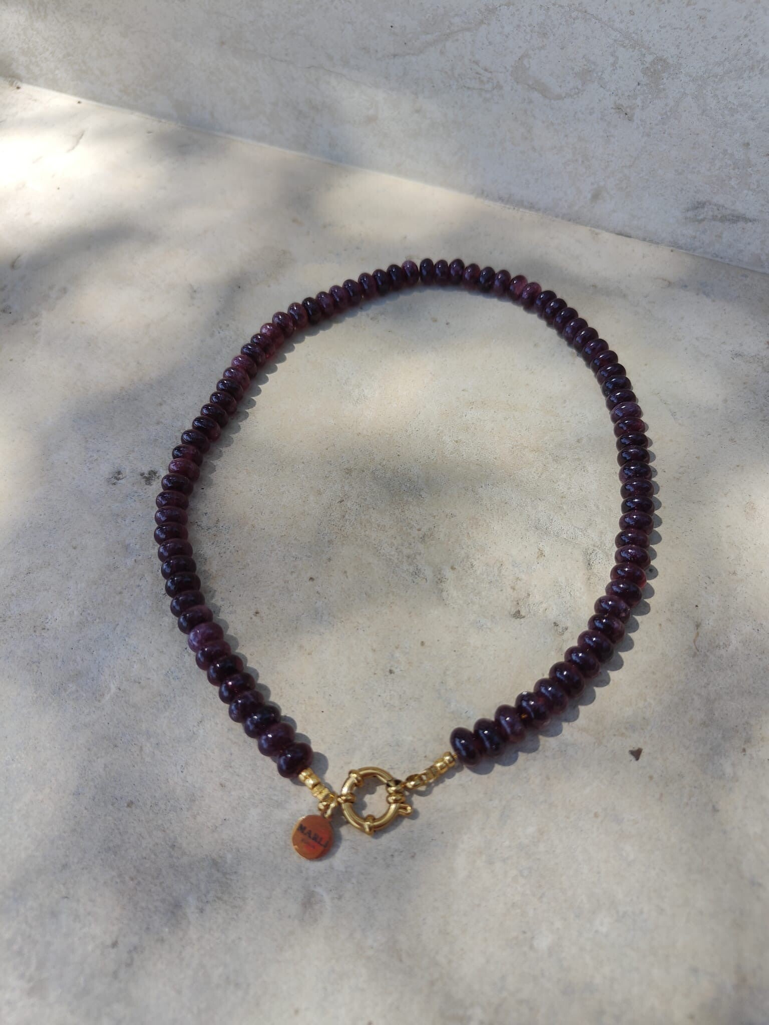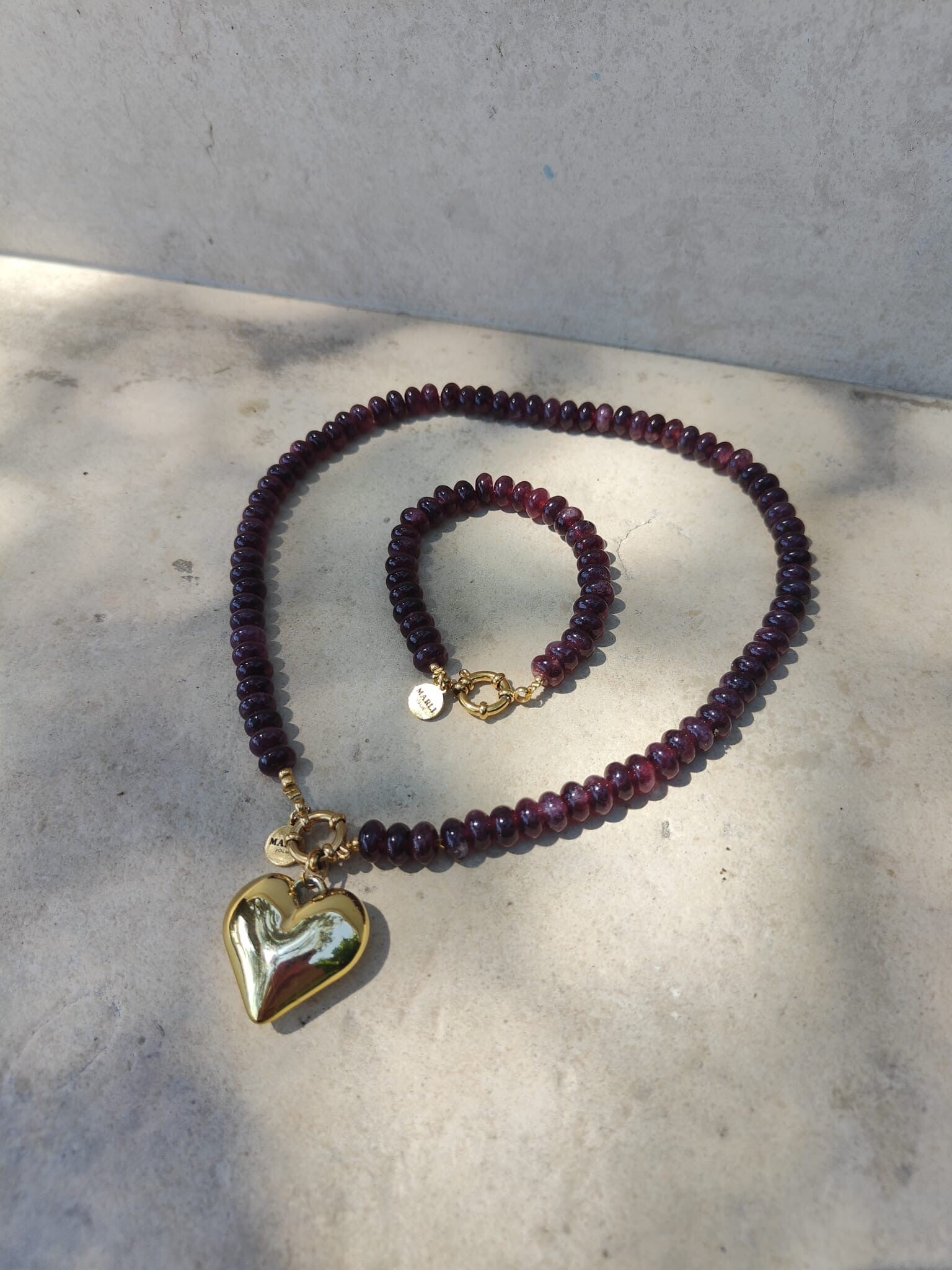 Handgemaakte ketting met natuursteenkralen. Laatste foto ter illustratie: set met armband en bedel