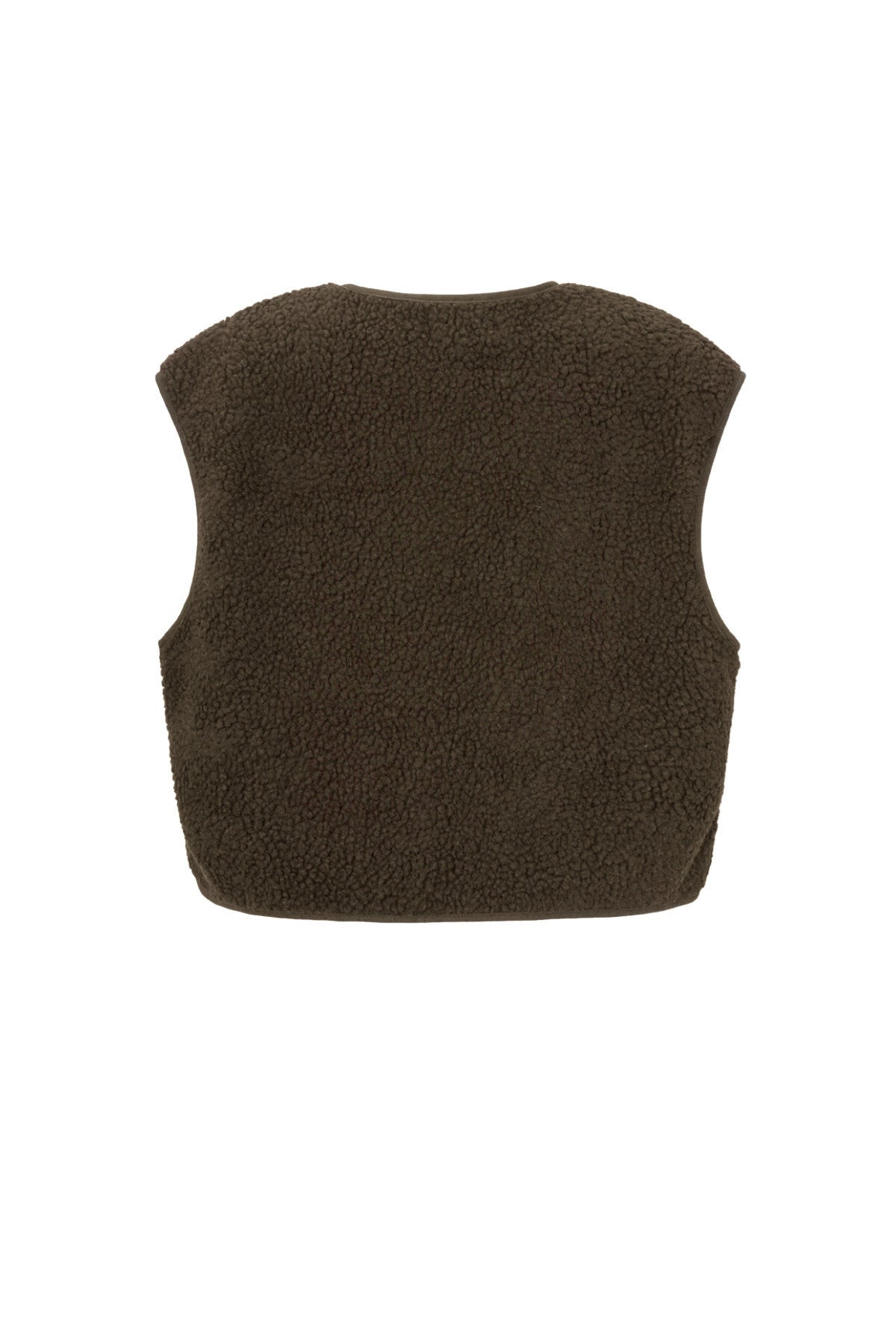 Dit donkerbruine (ook verkrijgbaar in off-white, bruin en beige), lichtgewicht teddy gilet is dé perfecte toevoeging aan je garderobe. Gemaakt met een zachte teddy structuur, biedt het comfort en stijl in één. Ideaal als extra (hip!) laagje voor binnen of buiten.